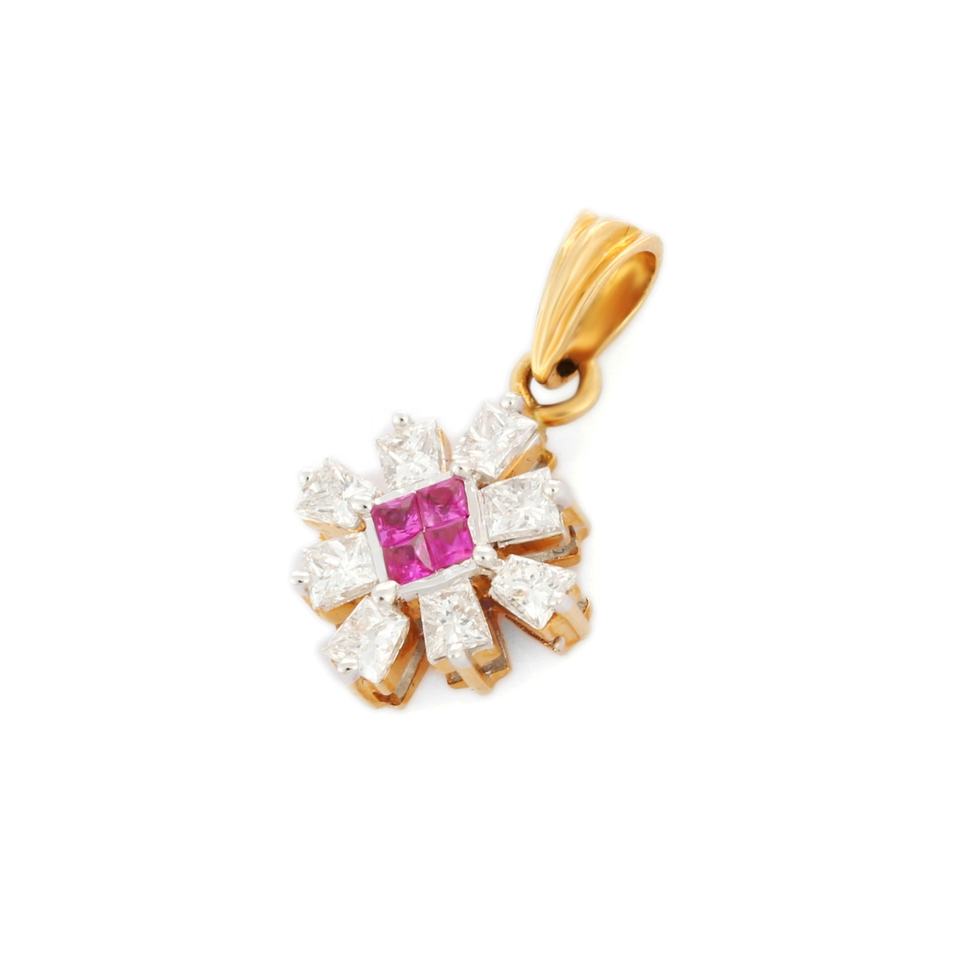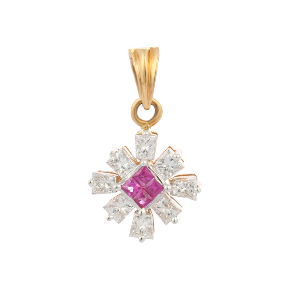 ขายดีที่สุด18K แข็งสีเหลืองทองกระดานหมากรุกจี้เพชรทับทิมทรงสี่เหลี่ยมธรรมชาติอัญมณีสำหรับงานปาร์ตี้