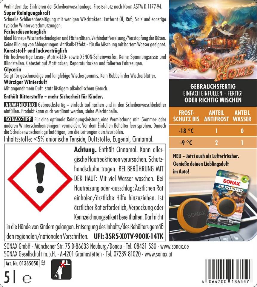 น้ำยาล้างกระจกรถยนต์สูตรกันน้ำแข็งและมองเห็นชัดเจน ยี่ห้อ Best Selling Professional ทนความเย็นได้ถึง -18 องศาเซลเซียส รุ่น Sweet Home (5 ลิตร) สำหรับฤดูหนาว