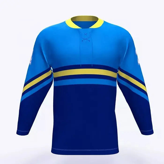 เสื้อฮอกกี้น้ำแข็งขายดีที่สุด ระบายอากาศได้ดี ผลิตจากโพลีเอสเตอร์ 100% คุณภาพเยี่ยม ดีไซน์โดดเด่น รับผลิตแบบ OEM พร้อมพิมพ์ชื่อทีม