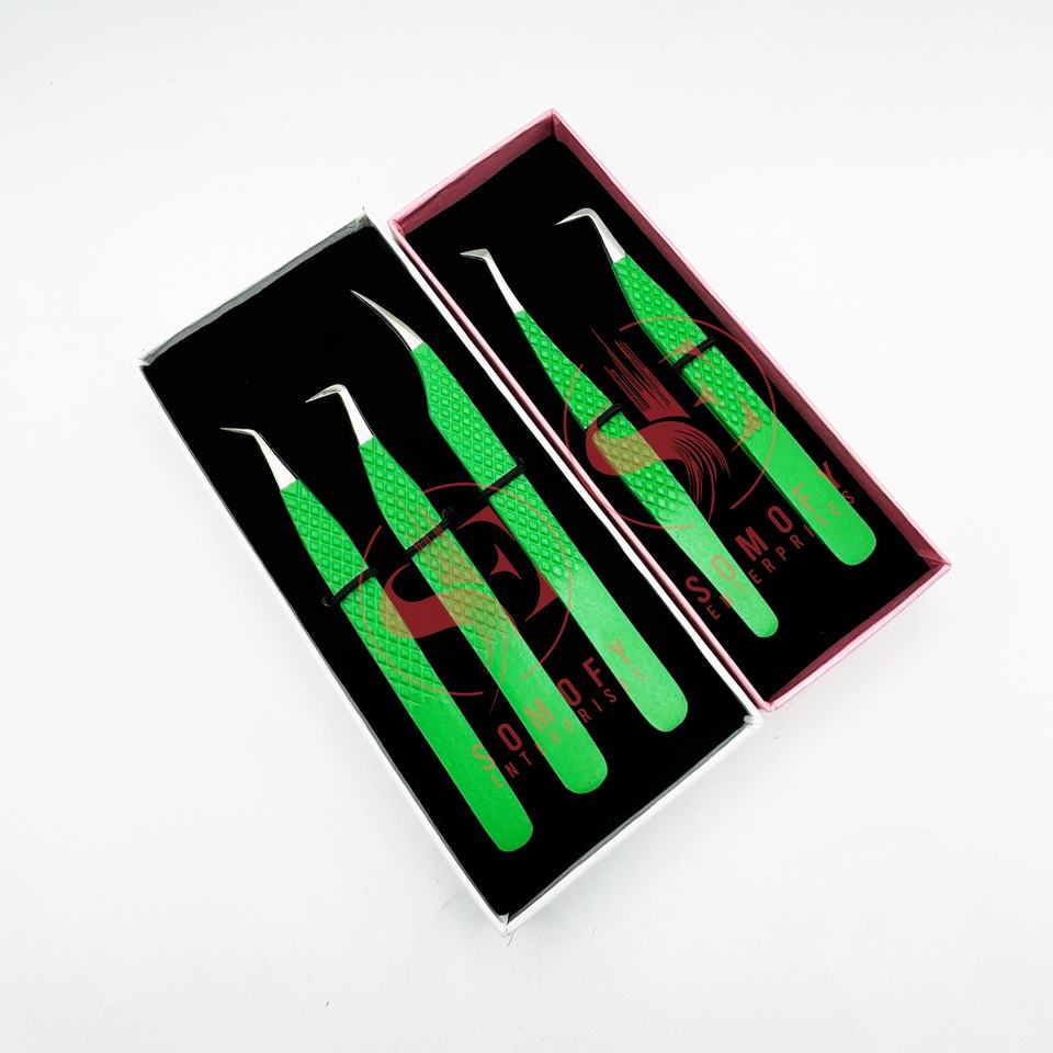 ชุดแหนบต่อขนตาสแตนเลสแบบมืออาชีพทุกองศาด้ามจับที่สมบูรณ์แบบการออกแบบที่ยั่งยืน