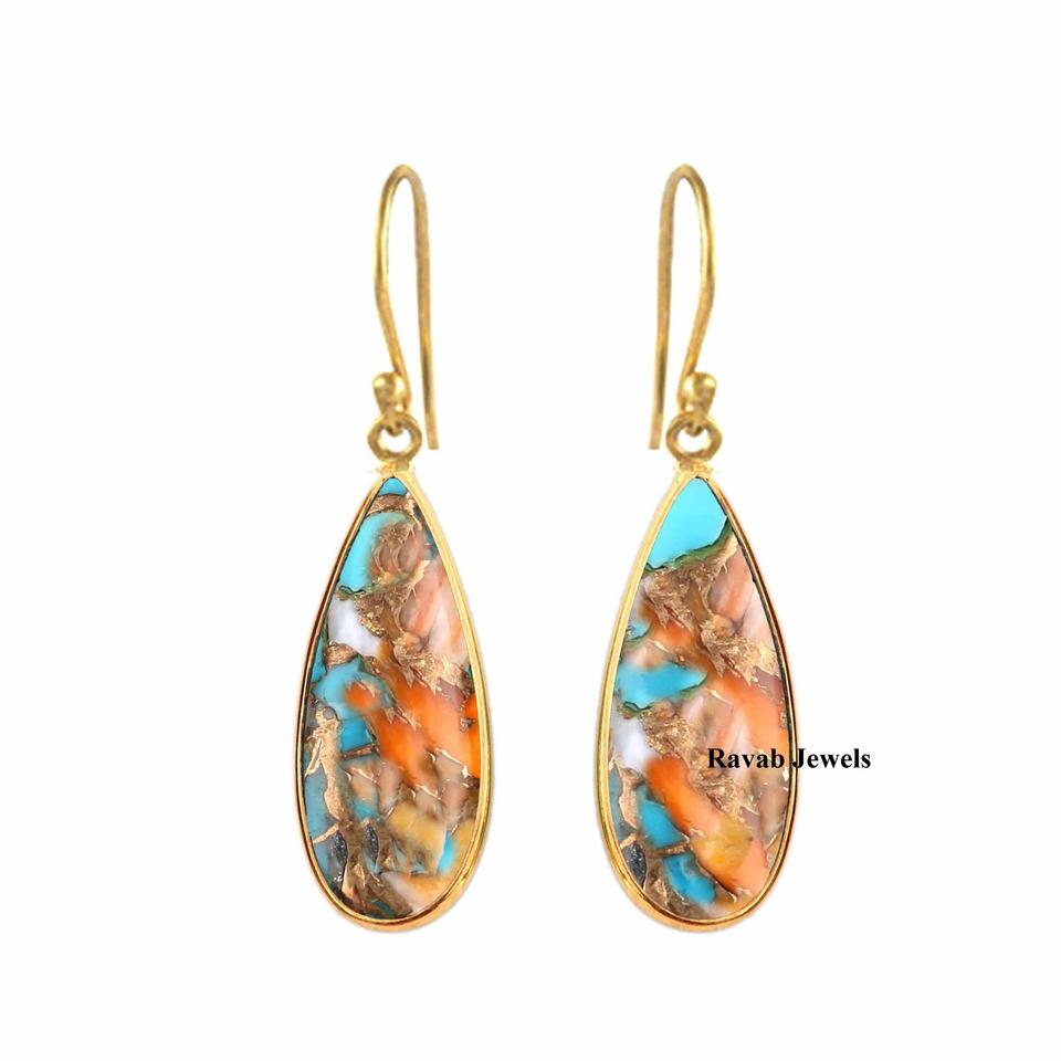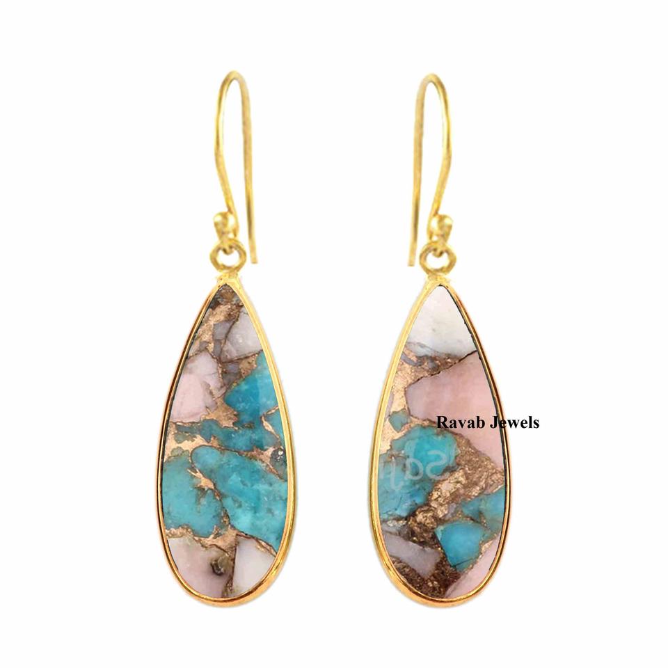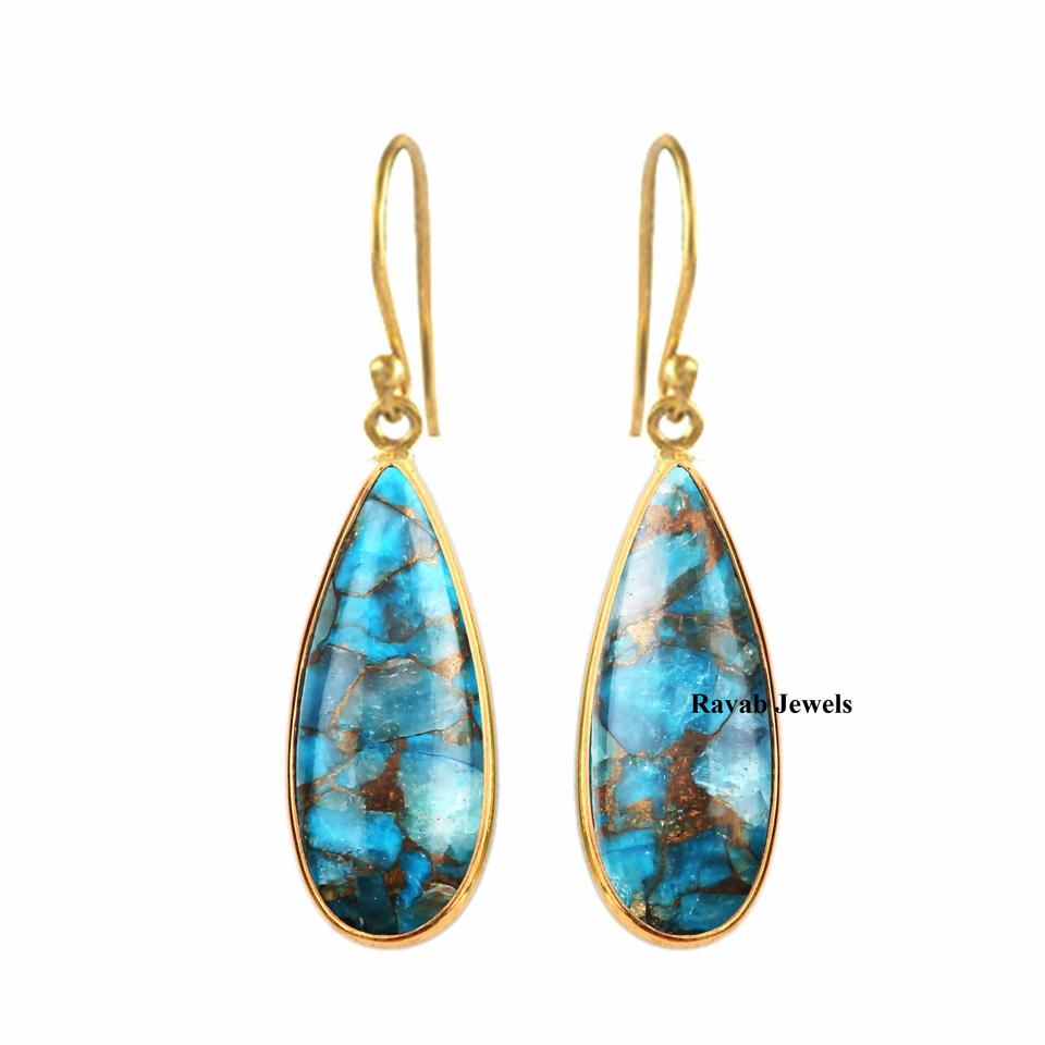 ต่างหู925เงินสเตอร์ลิง8*25มม. ทำจากทองแดงโอปอลเทอร์ควอยซ์