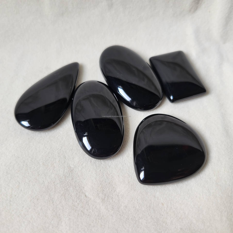 เครื่องประดับคริสตัลแท้สีดำพลอยโมราหลังแบน
