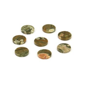 Product Name:Natural Green Rhyolite 12 MM Smooth Flat Round Shape Loose Gemstone