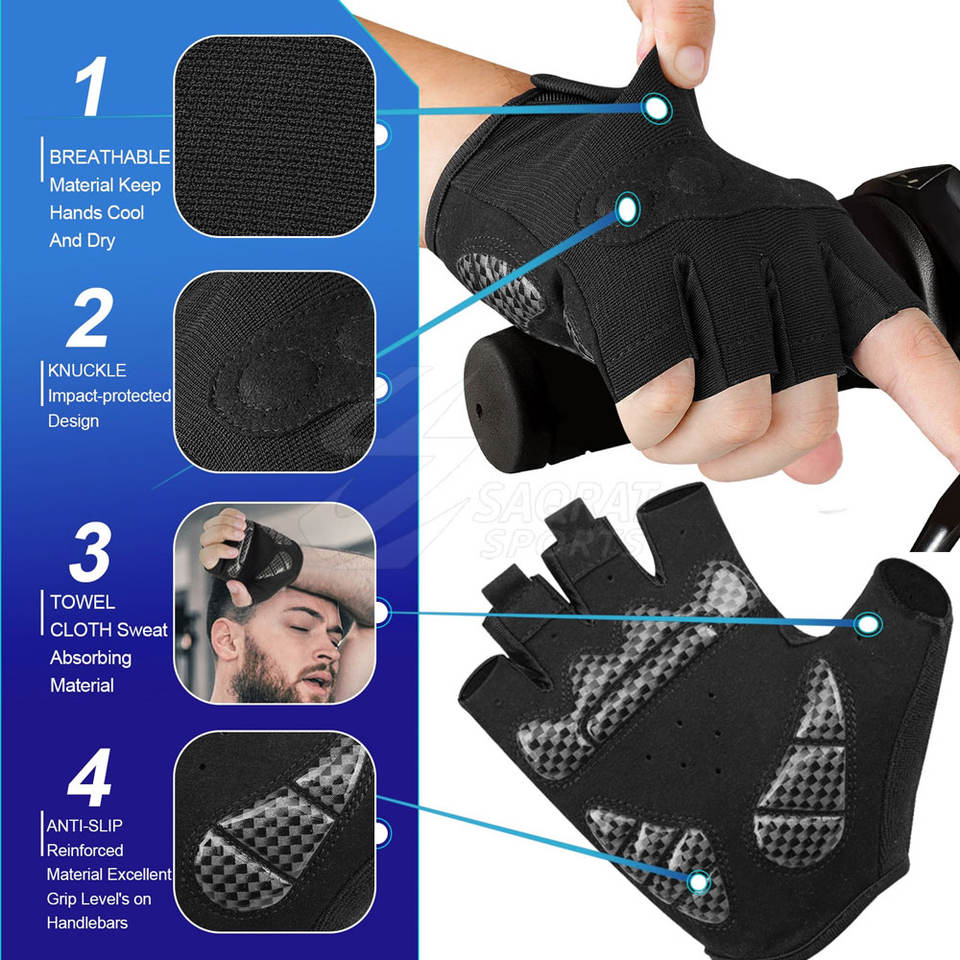 ถุงมือปั่นจักรยานครึ่งนิ้วระบายอากาศได้ถุงมือขี่จักรยานใส่สบาย
