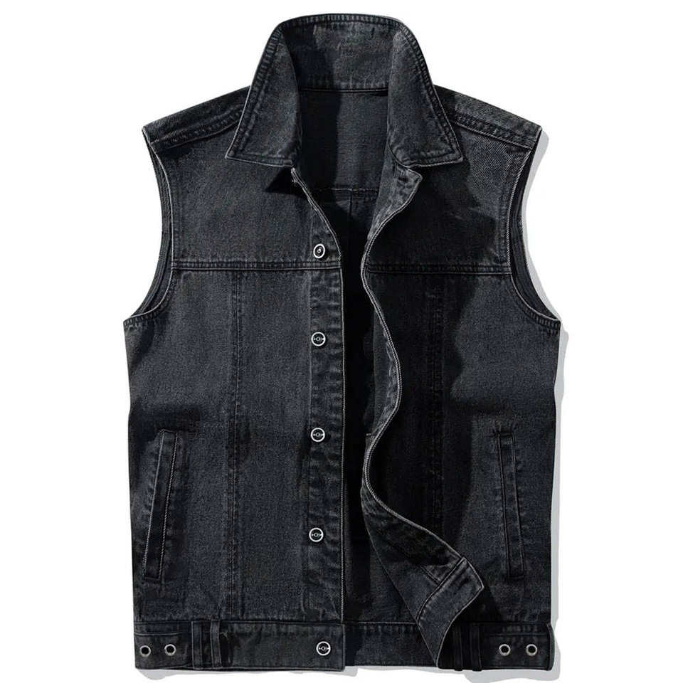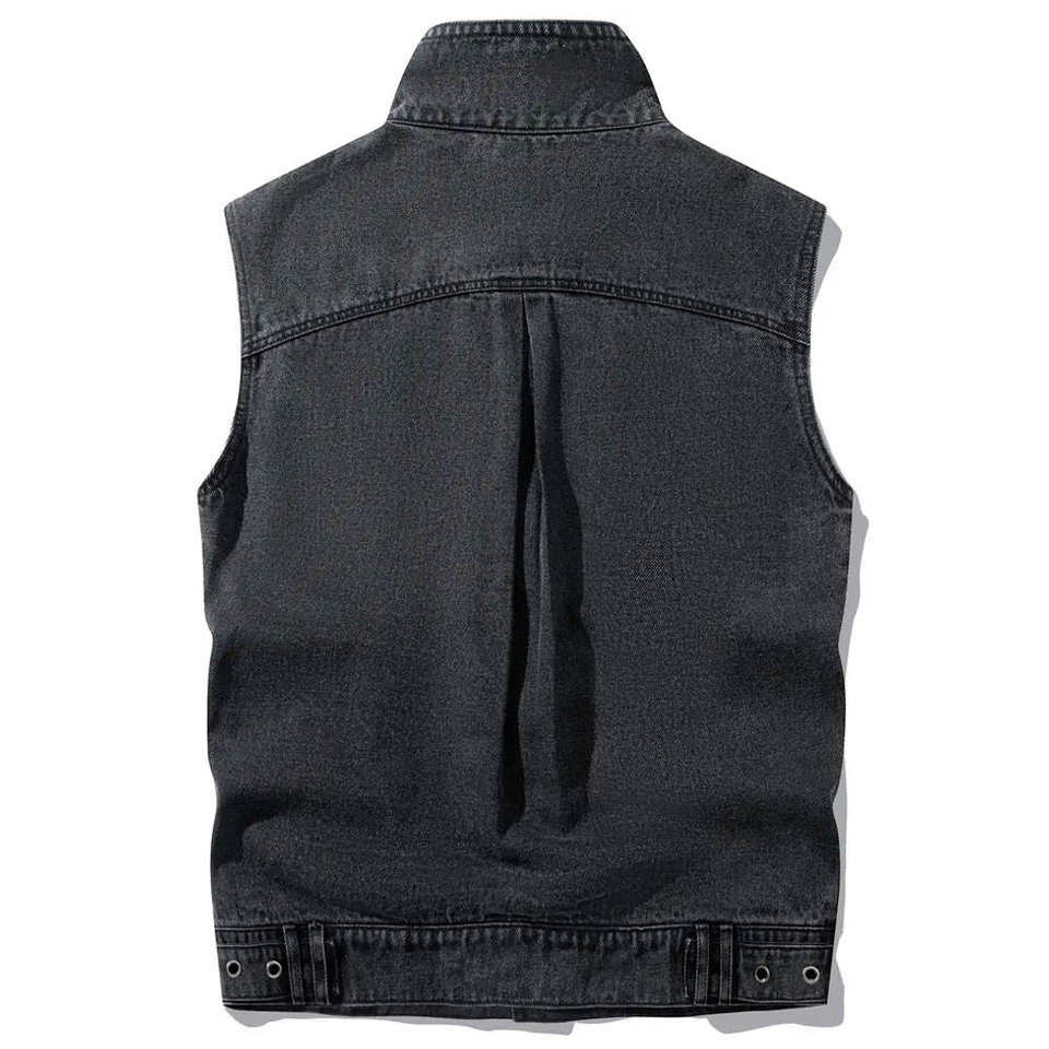 เสื้อกั๊กยีนส์แขนกุดสำหรับผู้ชายผ้าแคนวาสสำหรับฤดูหนาว