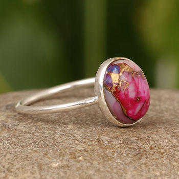 สินค้ามาใหม่แหวนรูปไข่หอยนางรมสีชมพูหนามเทอร์ควอยซ์ขนาด10X14มม. แข็ง925เงินแท้ทำด้วยมือแหวนประณีตเครื่องประดับผู้หญิง