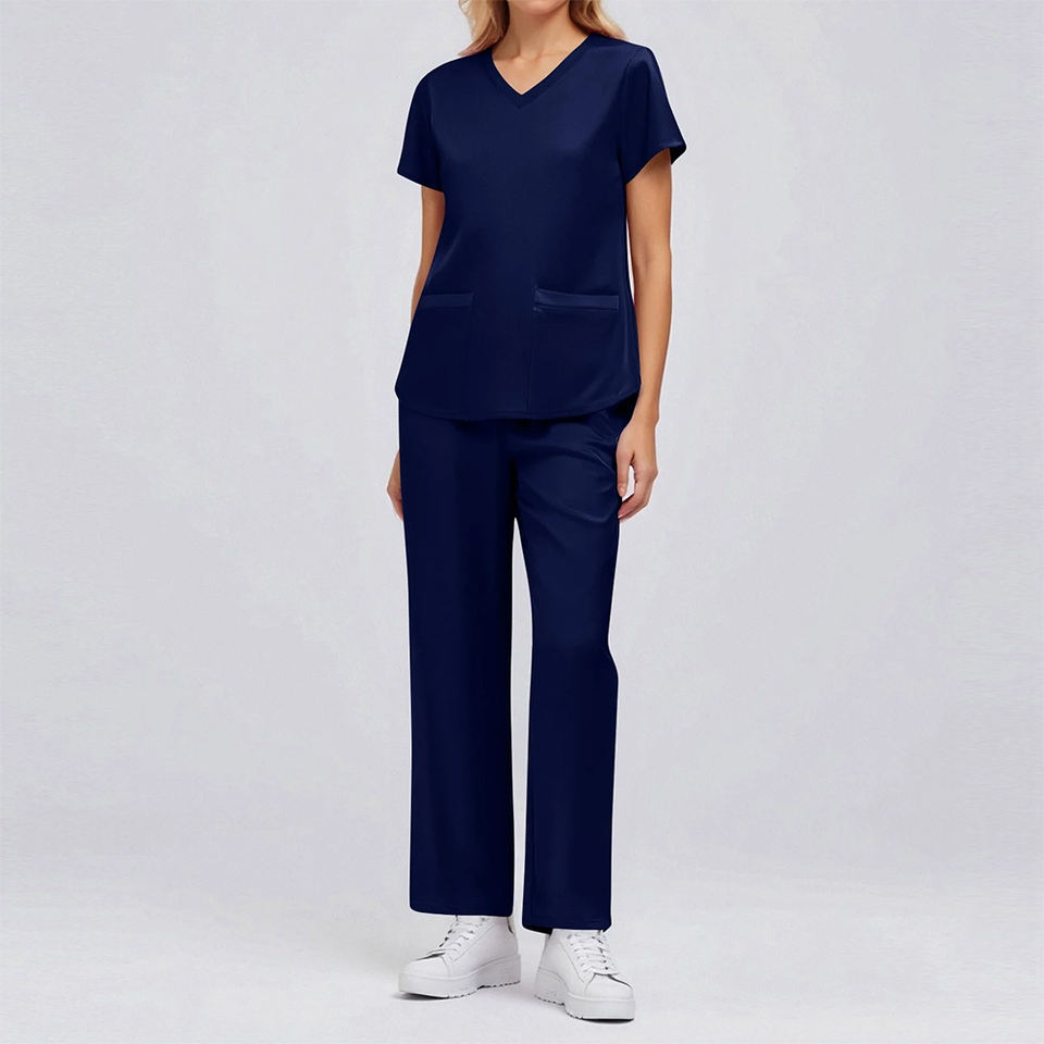 ชุดเครื่องแบบพยาบาลโรงพยาบาลสีกรมท่าชุดยูนิฟอร์มสำหรับสุภาพสตรีชุดยูนิฟอร์มขัดตัวทางการแพทย์เพื่อความงาม