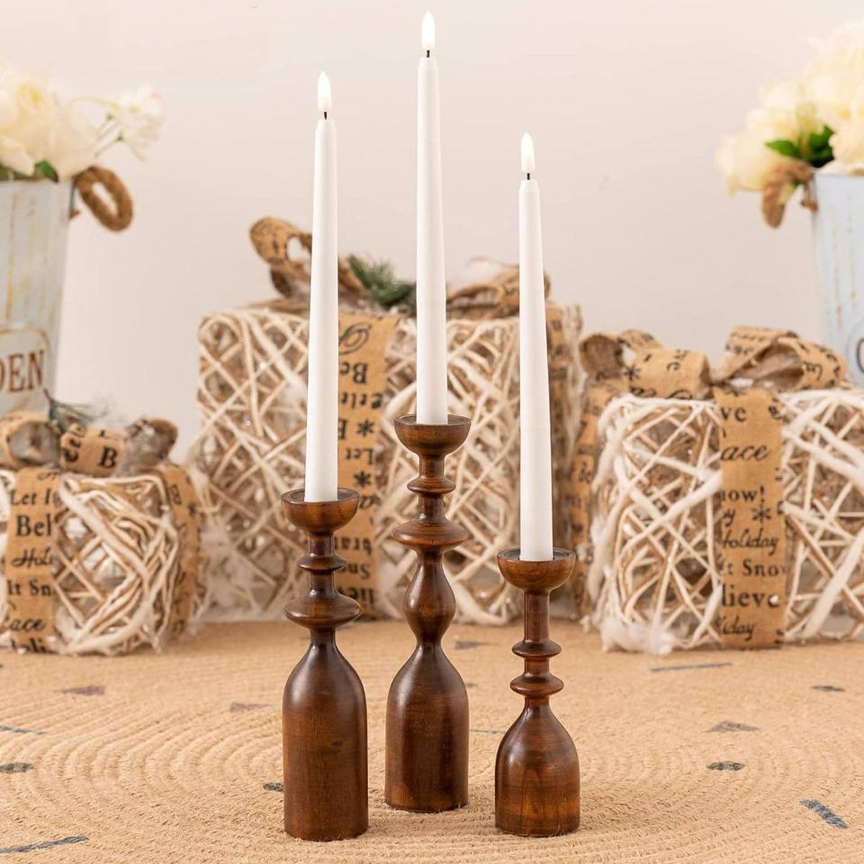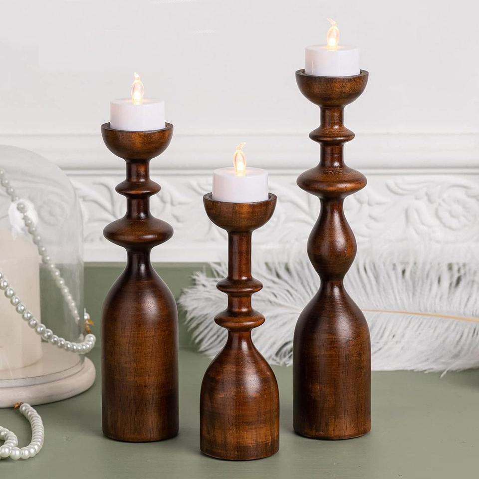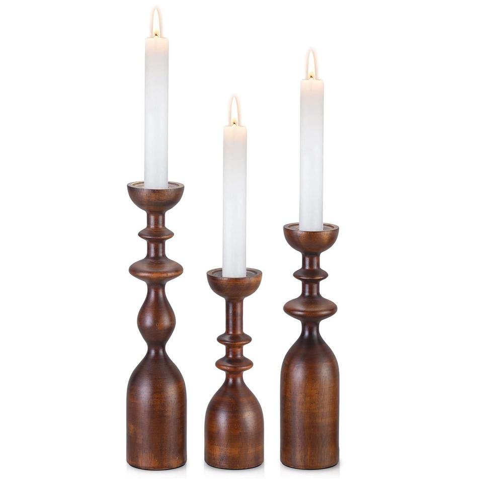 ชุดเชิงเทียนไม้สำหรับวางตรงกลางโต๊ะ3ชิ้นสำหรับวางเทียน