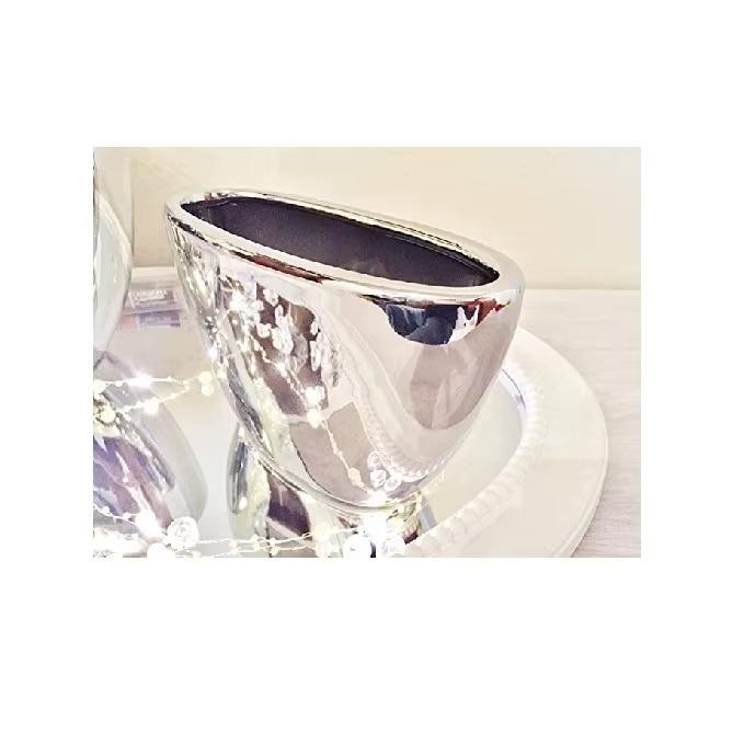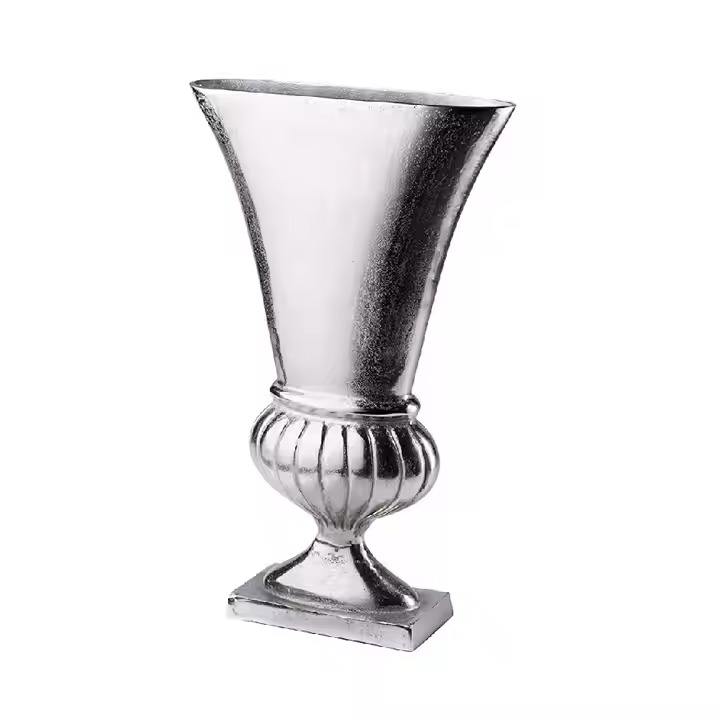 แจกันดอกไม้โลหะขัดเงาสีเงินเคลือบผิวแบบโบราณสำหรับตกแต่งบ้านการตกแต่งโต๊ะการใช้งาน