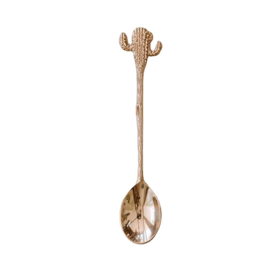 ที่ขายดีที่สุดทองเหลืองที่เป็นของแข็งช้อนขนมที่มีการออกแบบกระบองเพชรจับเงาโปแลนด์ช้อนอาหารค่ำที่มีคุณภาพสูงช้อนขนม