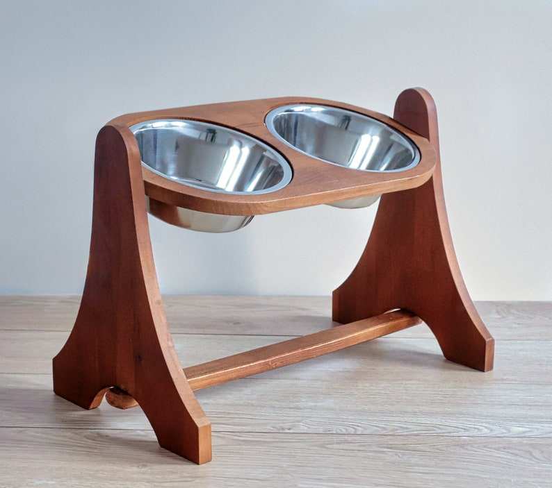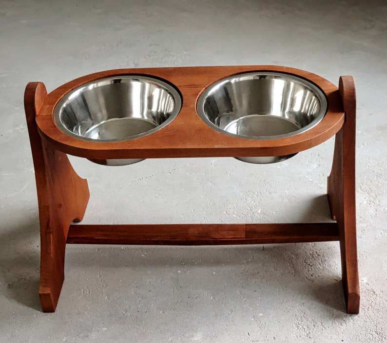 wooden dog feeder bowl