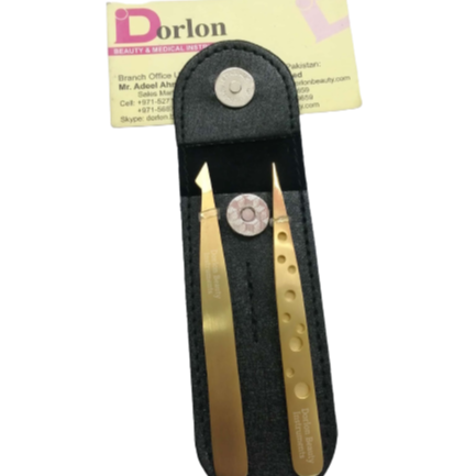 แหนบถอนขนคิ้วสแตนเลสเคลือบทองพร้อมกระเป๋า PU สีดำ