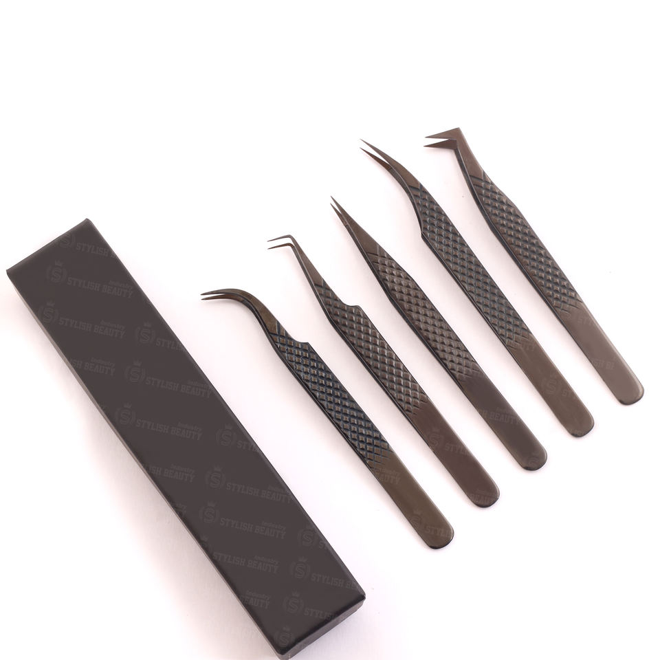 แหนบปลายแหลมแบบเต็มระยะสำหรับขนตาปลอมฉลากสแตนเลส