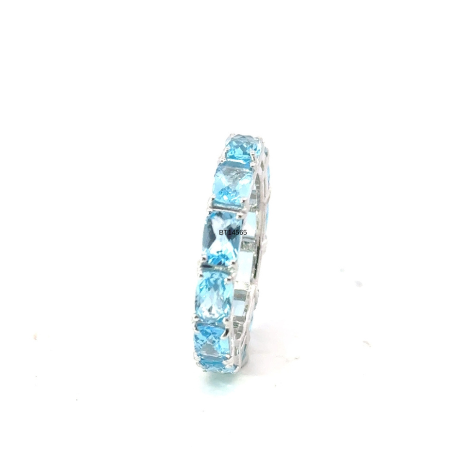 แหวนแต่งงานเงินแท้ 925 ชุบโรเดียม ประดับบลูโทแพซทรงแปดเหลี่ยม ดีไซน์เต็มวง ขายดีที่สุด ราคาโรงงานขายส่ง