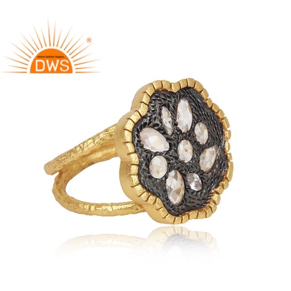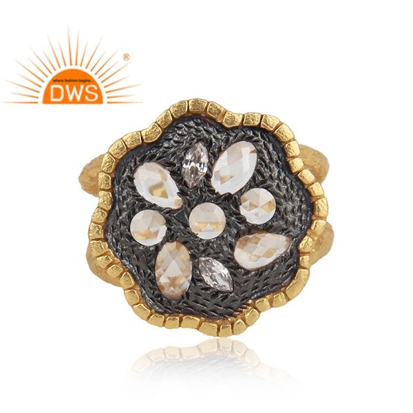 แหวนเงินแท้ชุบทอง 18K ประดับเพชร CZ ธรรมชาติ ดีไซน์วงแหวนแยกส่วน ขายดีที่สุด จากผู้ผลิตเครื่องประดับแฟชั่น