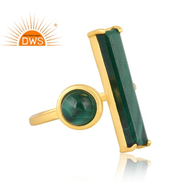 แหวนเงินแท้18K ประดับอัญมณีมาลาไคต์ธรรมชาติชุบทอง
