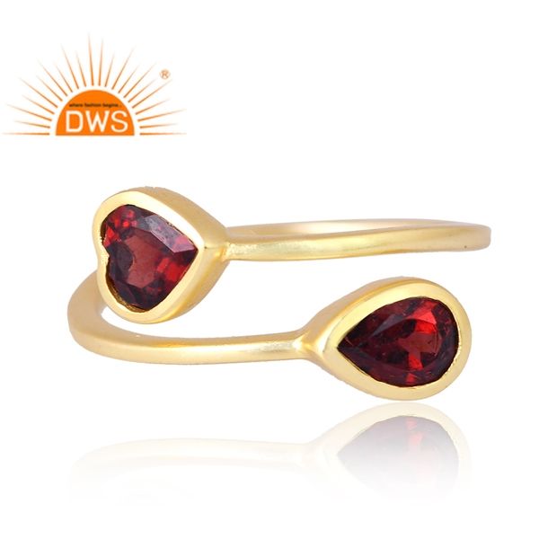แหวนพลอยโกเมนธรรมชาติชุบทอง18K แหวนเงินแท้ปรับได้ราคาถูก
