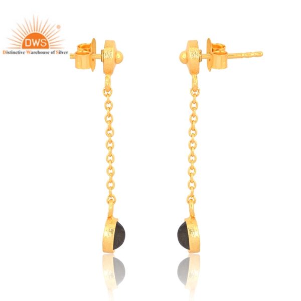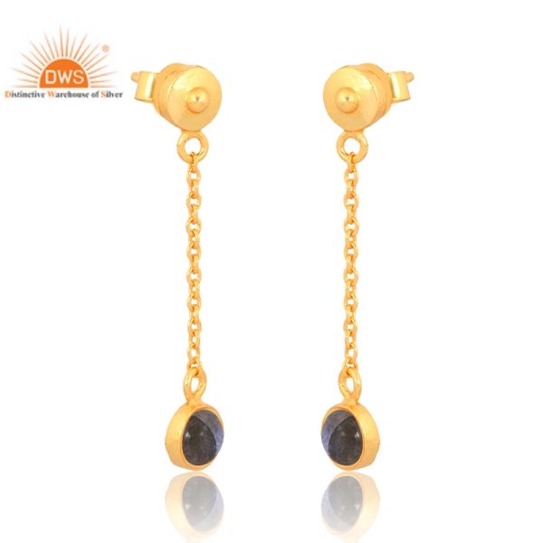 ต่างหูอัญมณีลาบราดอไรต์ธรรมชาติชุบทอง18K ต่างหูห้อยอัญมณี