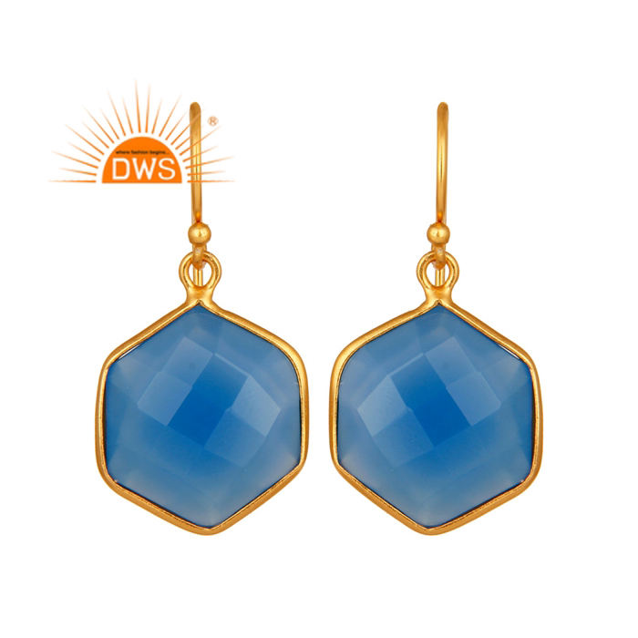 ขายดีที่สุดเงินสเตอร์ลิง18K ชุบทองธรรมชาติพลอยคาลซิโดนีต่างหูห้อยอัญมณีผู้ผลิตเครื่องประดับที่ดี