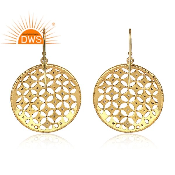 ต่างหูเงินสเตอร์ลิง18K ชุบทอง18K ประดับเพชร CZ ดีไซน์ลายมันดาลาเครื่องประดับอัญมณีสำหรับผู้หญิง