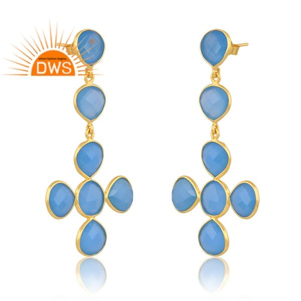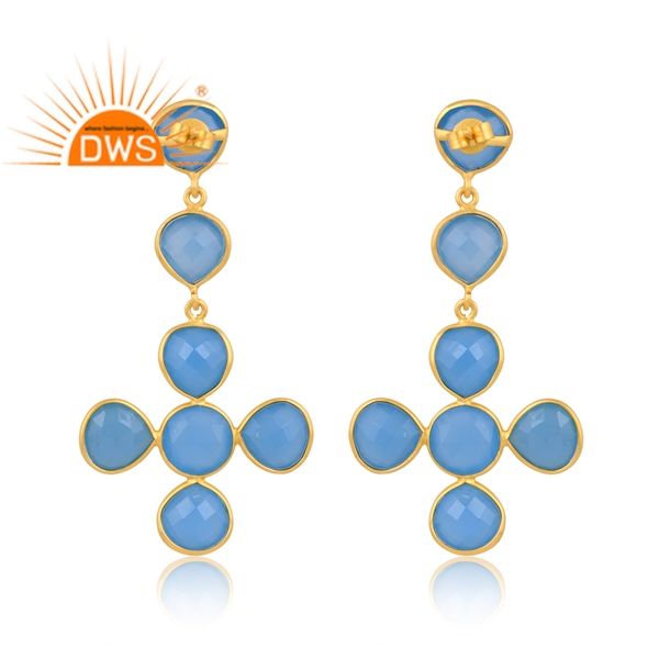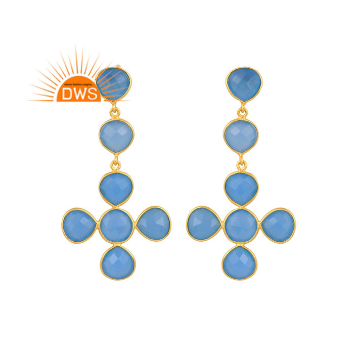 ขายดีที่สุดเงินสเตอร์ลิง18K ชุบทองธรรมชาติพลอยคาลซิโดนีต่างหูห้อยอัญมณีผู้ผลิตเครื่องประดับที่ดี