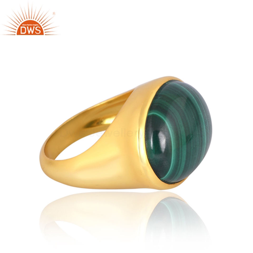 แหวนเงินแท้18K แหวนมาลาไคต์ธรรมชาติชุบทองแหวนคอลเลกชันเครื่องประดับโบราณ