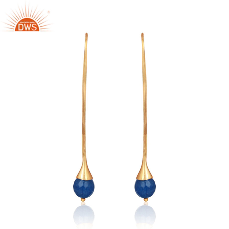 ที่ขายดีที่สุดเงินสเตอร์ลิง18พันชุบทองธรรมชาติสีฟ้าAventurineอัญมณีห้อยต่างหูDemi Fineผู้ผลิตเครื่องประดับ