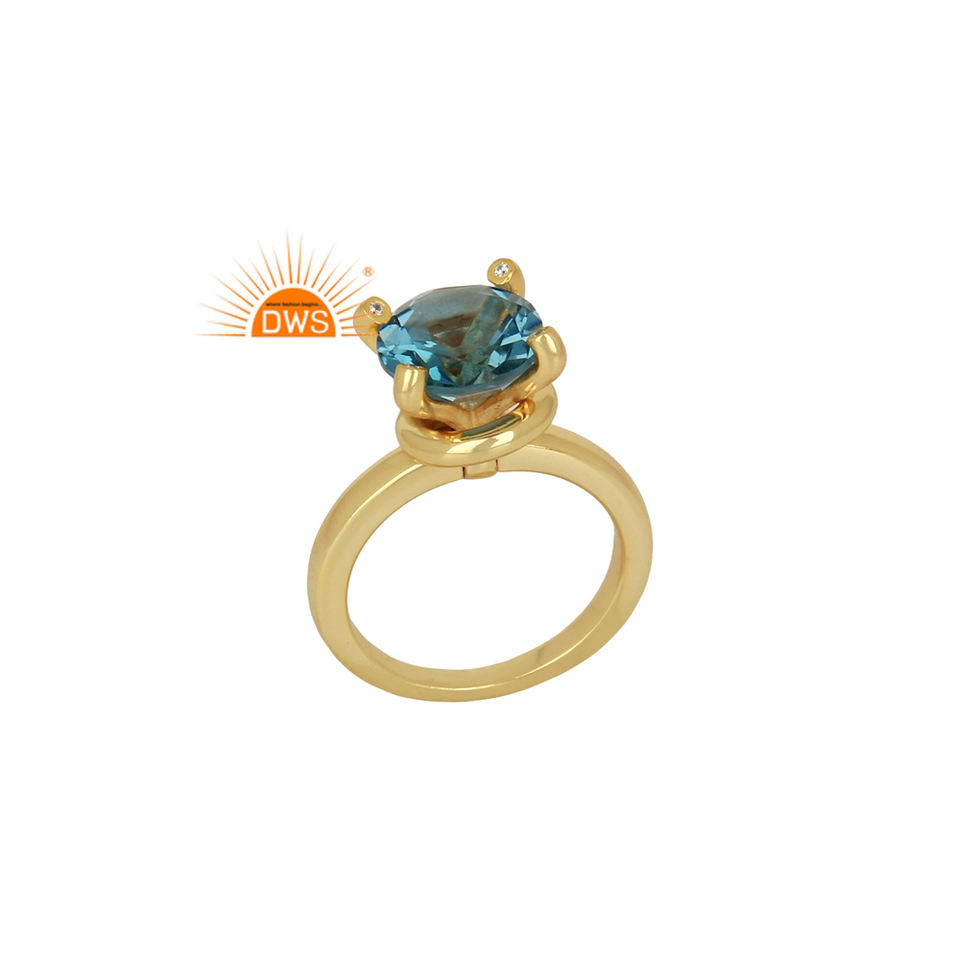 แหวนเงินแท้ชุบทองธรรมชาติ CZ และ London Blue Topaz STACKABLE Ring Demi Fine Jewelry