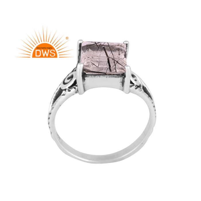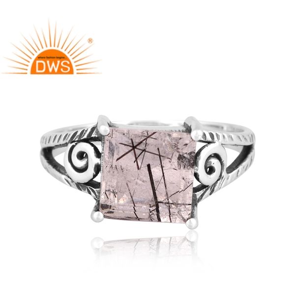 แหวนแยกอัญมณีสีดำธรรมชาติสีเงินสเตอร์ลิงเครื่องประดับสำหรับผู้หญิงของขวัญ