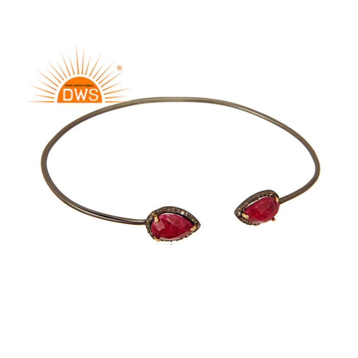 กำไลข้อมือเพชรพลอยและทับทิมธรรมชาติสีเงินสเตอร์ลิงเครื่องประดับที่ออกแบบได้เองของขวัญสำหรับผู้หญิงสำหรับเธอ
