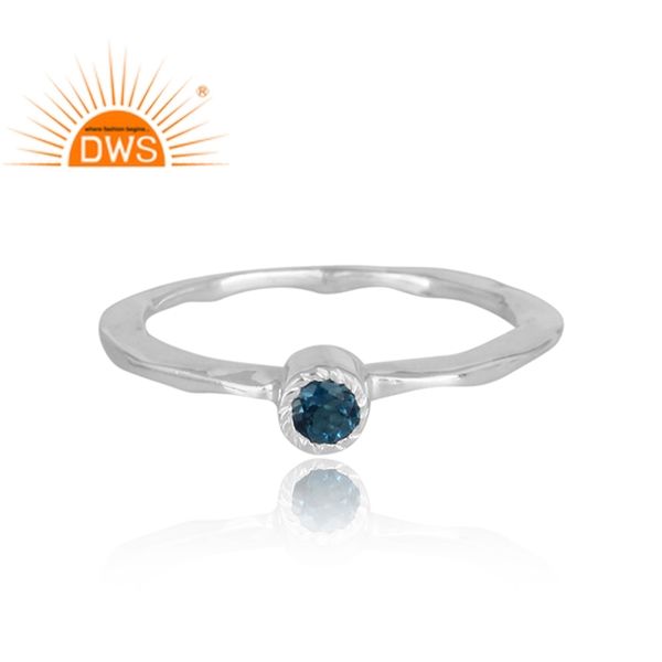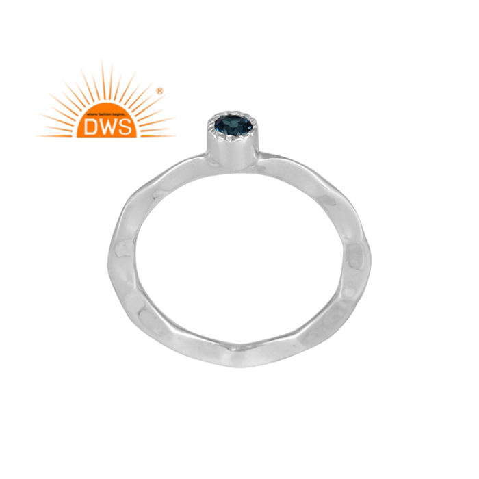 แหวนเงินแท้ธรรมชาติสีฟ้าโทแพซจากลอนดอนเครื่องประดับวงแหวนค้อนทุบ