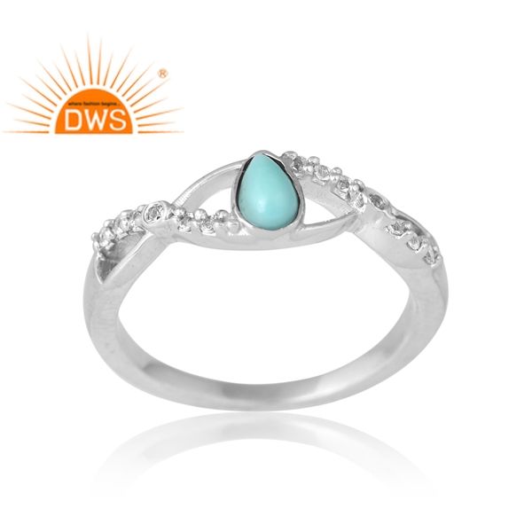 แหวนพลอยบุษราคัมสีเงินแท้ชุบพัลเลเดียมสีเทอร์ควอยซ์และสีขาวผลิตตามแบบ