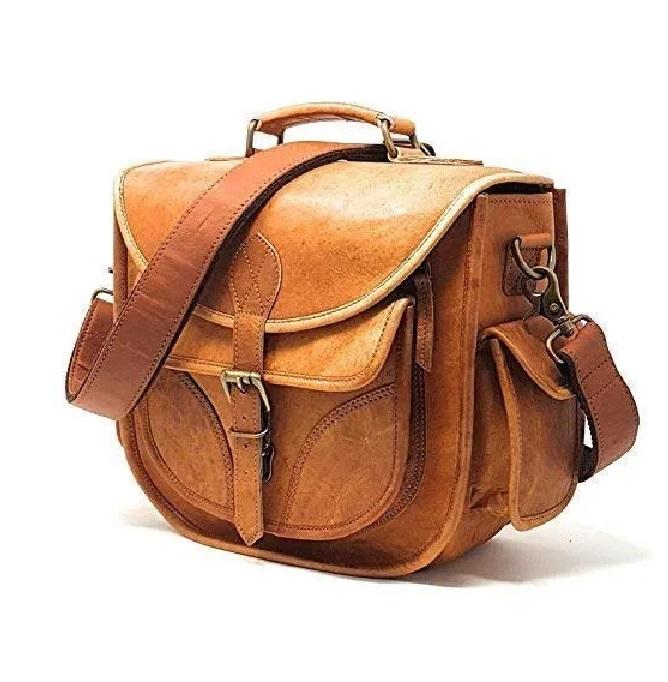 กระเป๋ากล้องสะพายไหล่หนังแท้สุดหรูมีซิปสำหรับการเดินทางพร้อมกล้อง DSLR
