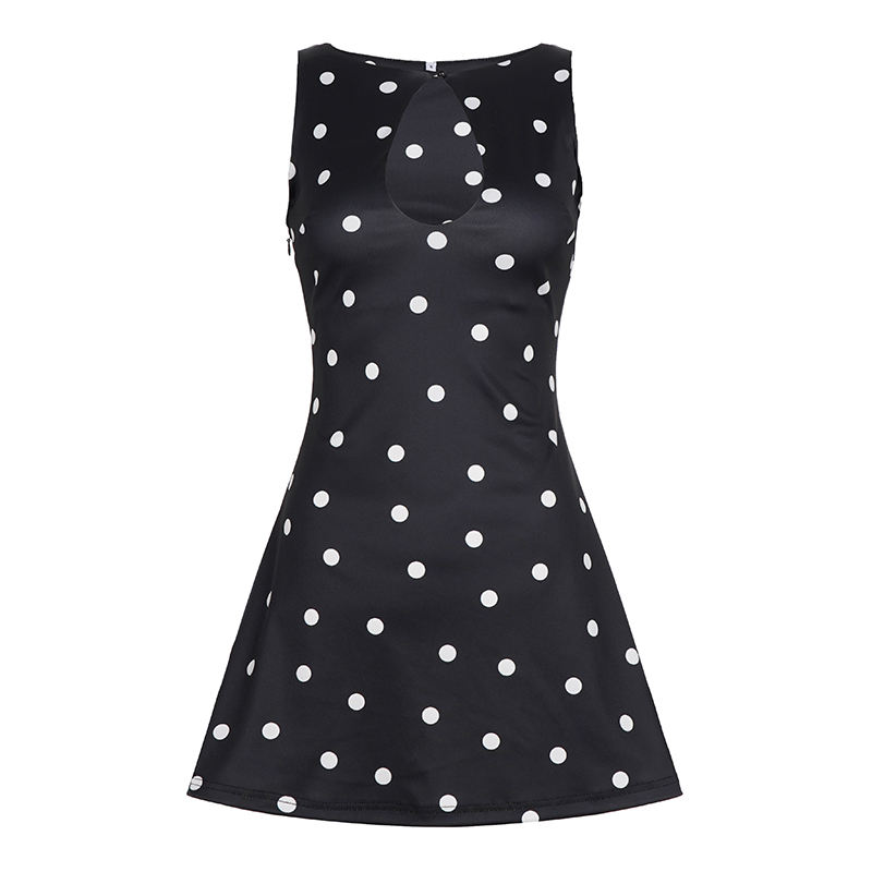 เดรสผู้หญิงขายดีประจำฤดูร้อน ผ้าทอลายดิจิตอล คอ halter ลายจุด เซ็กซี่ หวาน สไตล์สตรีทแวร์ ผ้าตาข่ายผูกโบว์เว้าหลังลึก