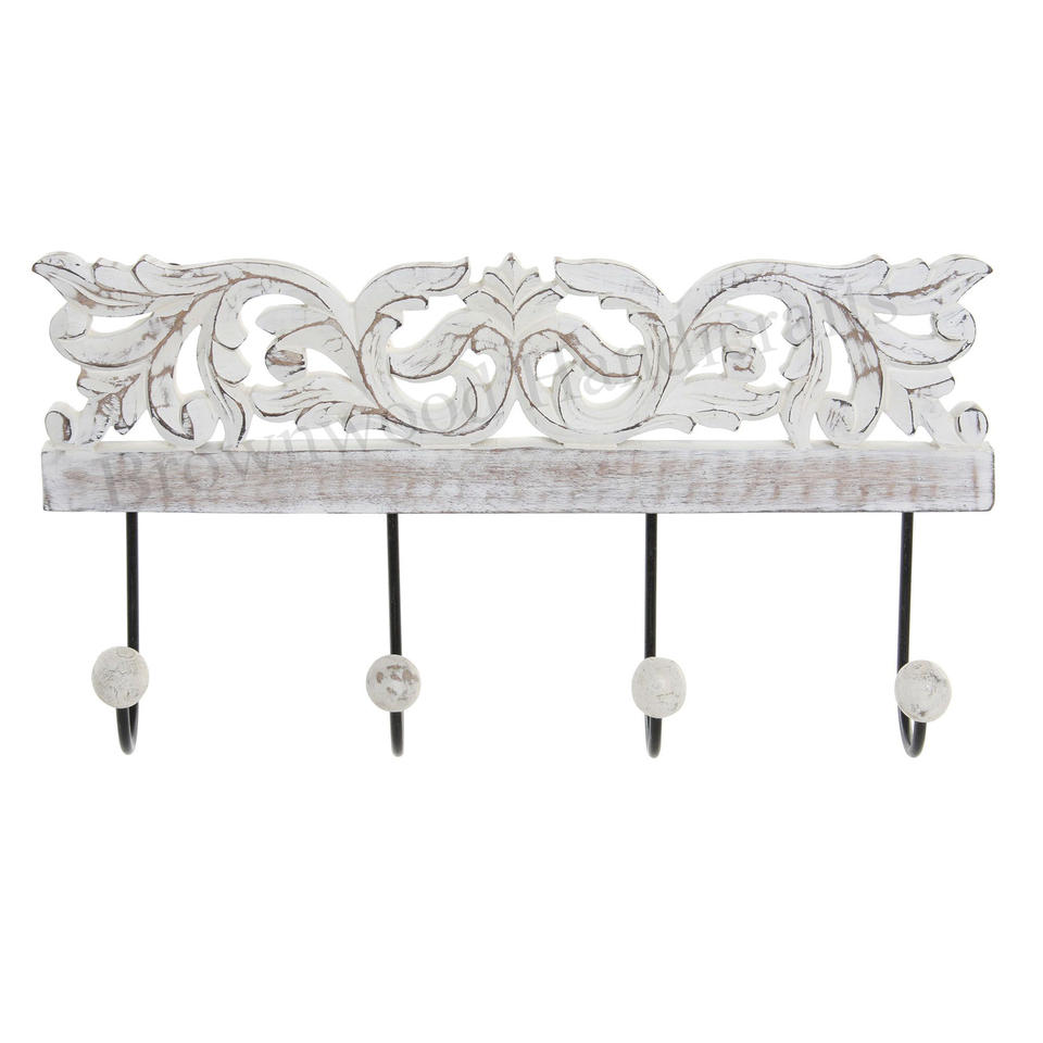 ตะขอแขวนติดผนังแกะสลักสีขาวโบราณขนาด16x4นิ้ว