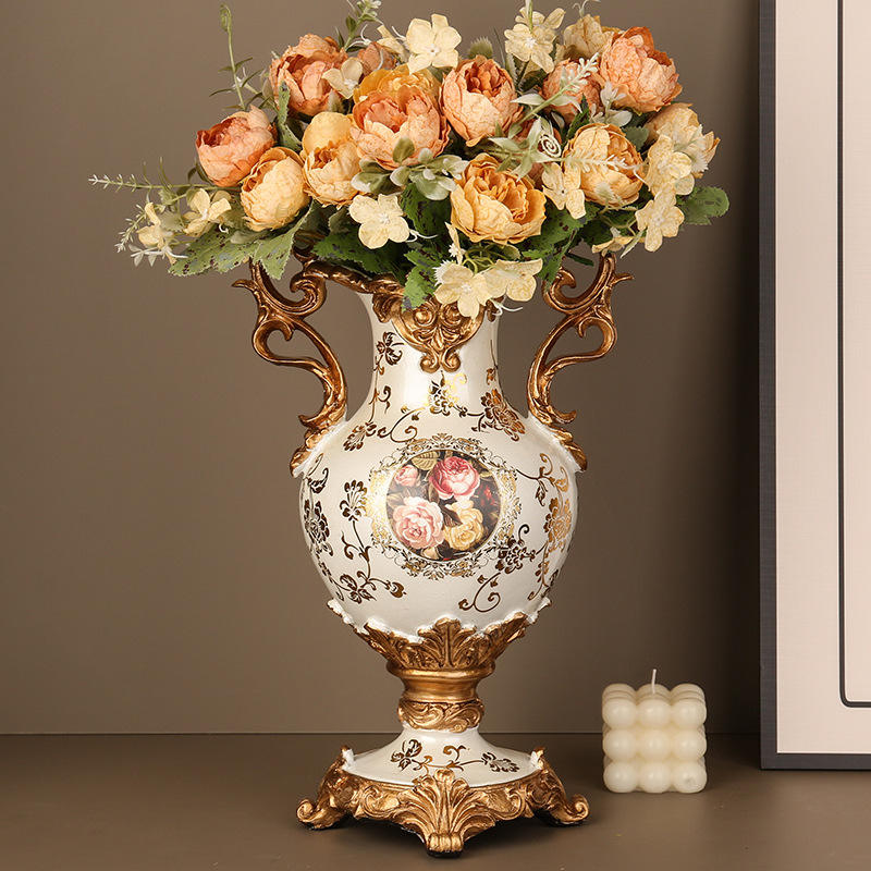แจกันเซรามิกสไตล์วินเทจทรงสูงของตกแต่งบ้านทำจากเรซิ่นหรูหราสำหรับห้องนั่งเล่น