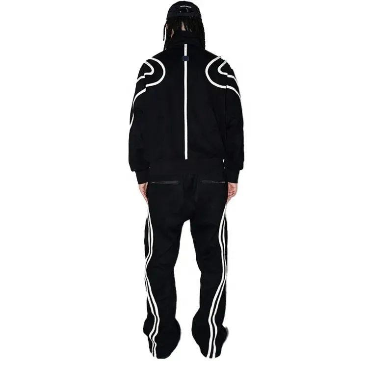 ชุดวอร์มสำหรับผู้ชายชุดวอร์มสีดำย้อมสีขาวมีฮู้ดทรงหลวมมีซิปและกางเกง