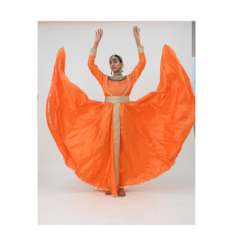 ชุดเดรสสำหรับเต้นของผู้หญิงชุดเดรสยาวผ้าจอร์เจียแบบอินเดียดั้งเดิมพร้อมดีไซน์เนอร์