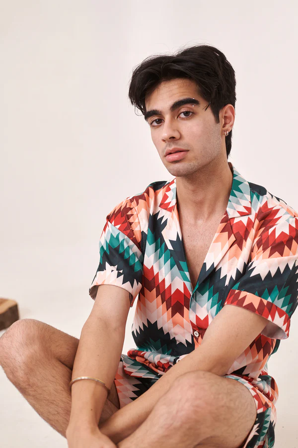ชุดเซ็ตเสื้อผ้าผู้ชายลายซิกแซกสุดฮิต น้ำหนักเบา สวมใส่สบาย เหมาะกับหน้าร้อน เสื้อและกางเกงขาสั้นเข้าชุด ทรงหลวม สไตล์สตรีทแฟชั่น