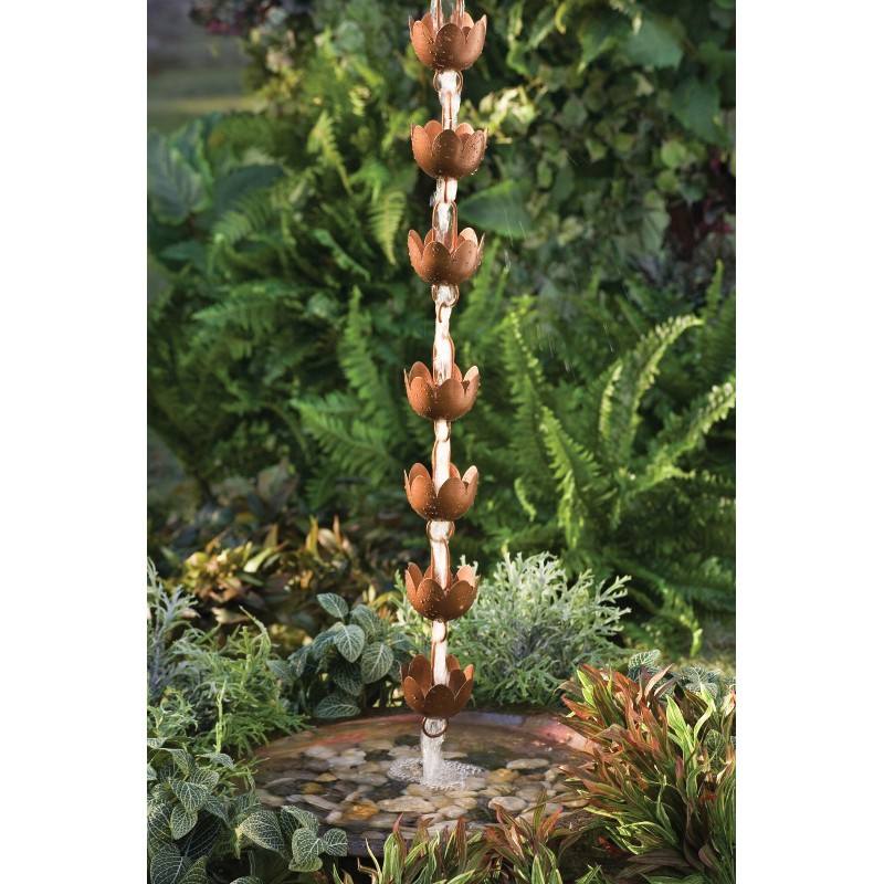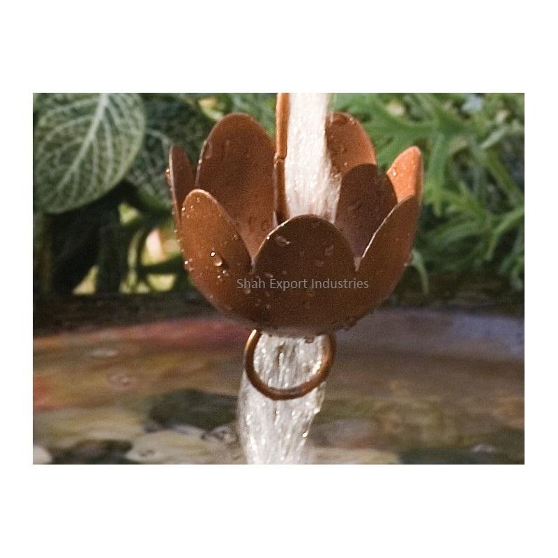 โซ่ฝนโลหะถ้วยดอกทิวลิปสำหรับตกแต่งบ้านและสวนน้ำมีสีทองแดงแขวนฝน
