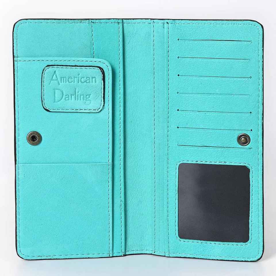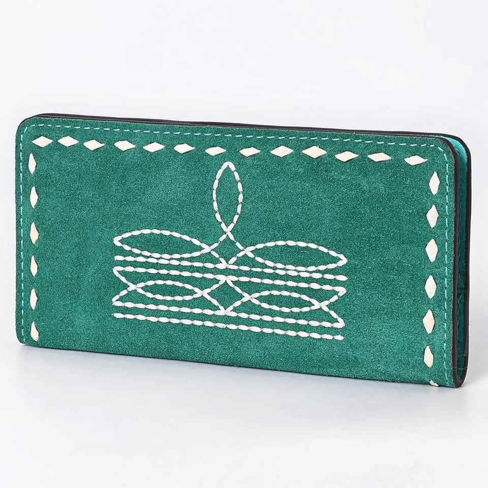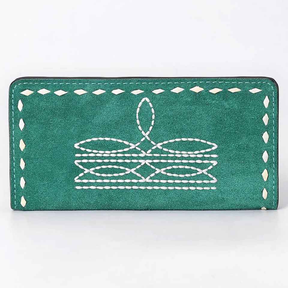 กระเป๋าเงินหนังวัวสไตล์โบฮีเมียนแนวตะวันตกสีเทอร์ควอยซ์ขายดี