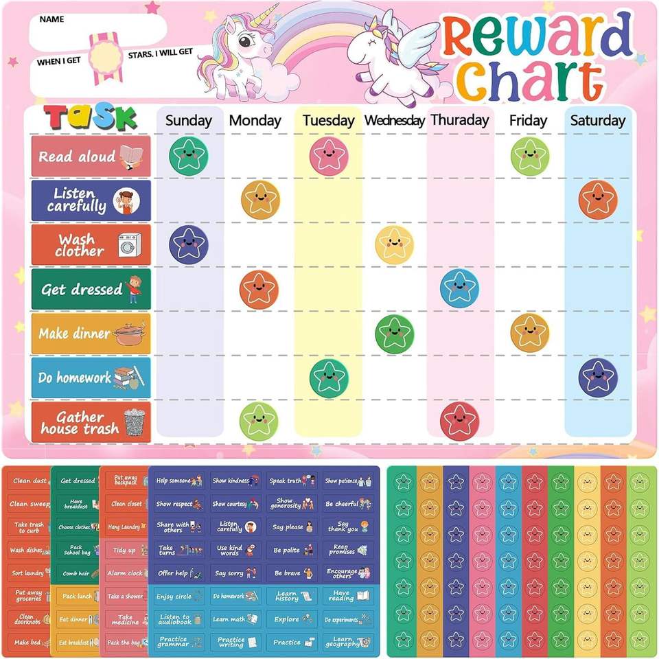 สติกเกอร์แม่เหล็กยูนิคอร์นลบได้ ขายดีที่สุด แผนภูมิรางวัลพฤติกรรมเด็ก ของเล่นกิจกรรมติดตู้เย็น สำหรับเด็ก
