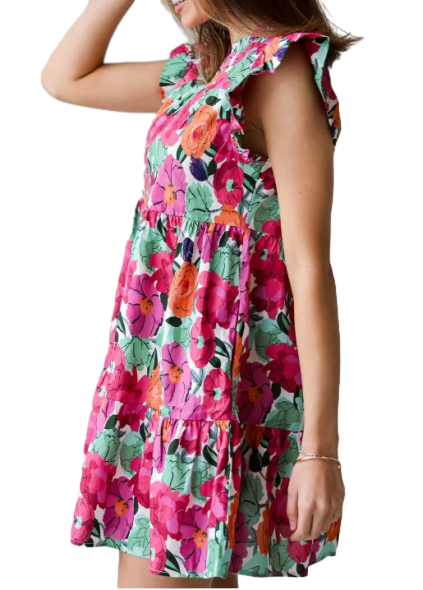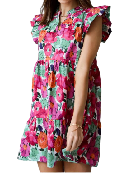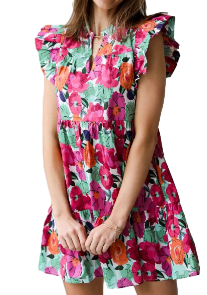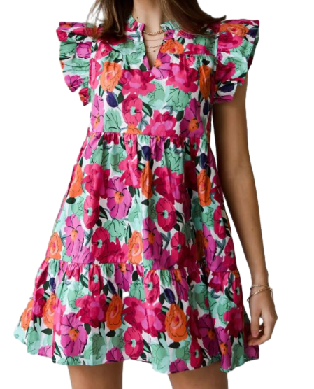 เดรสสั้นลายดอกไม้สีชมพูสำหรับงานแต่งงานงานปาร์ตี้และโอกาสพิเศษ