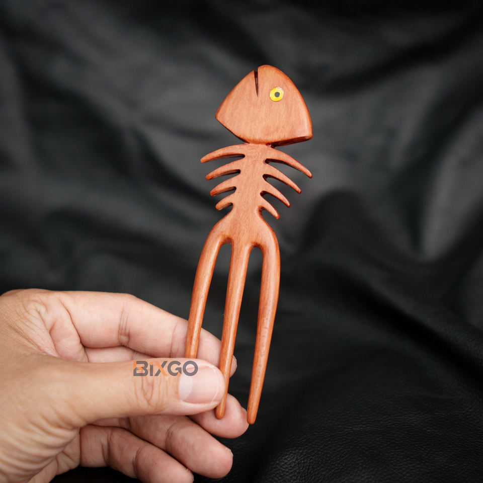 ส้อมขนปลากระดูกปลาทำด้วยมือไม่เหมือนใครของขวัญที่สมบูรณ์แบบสำหรับผู้หญิงที่มีผมยาวและมวยผม