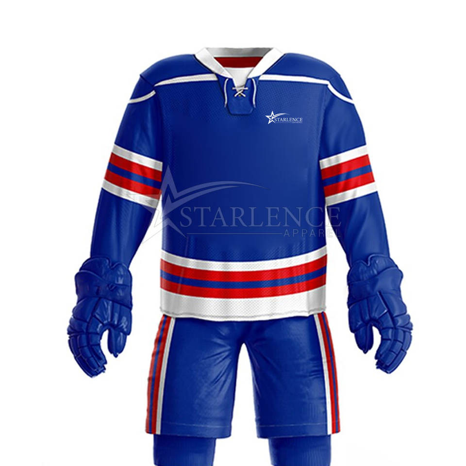 ชุดยูนิฟอร์มฮ็อกกี้น้ำแข็งสำหรับทุกเพศชุดเนื้อสัมผัสนุ่มราคาโรงงานพร้อมบริการ OEM