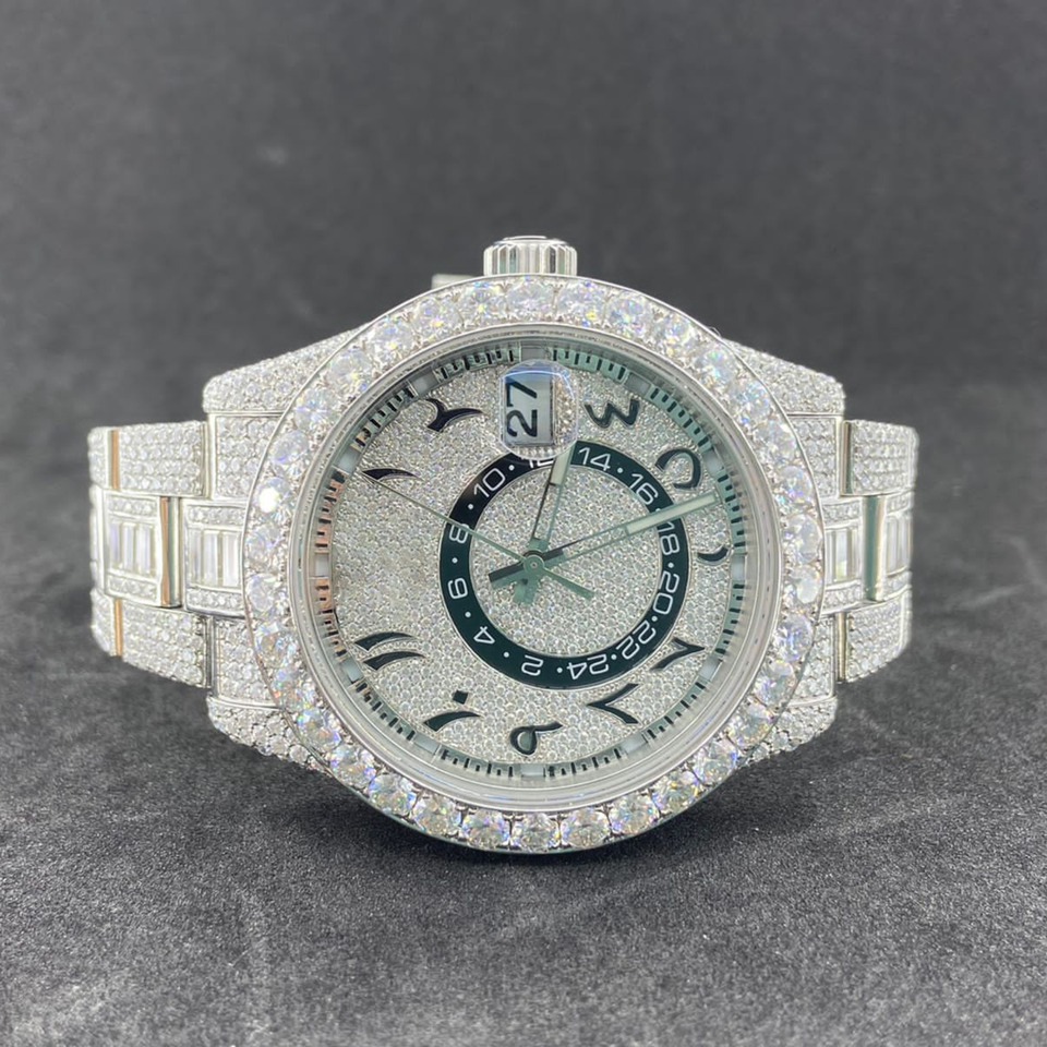 นาฬิกา Moissanite ที่มีน้ําแข็งสําหรับทุกเพศที่ขายดีที่สุดคุณสมบัติวันที่อัตโนมัตินาฬิกาเพชรไร้สีคุณภาพสูงในราคาขายส่ง