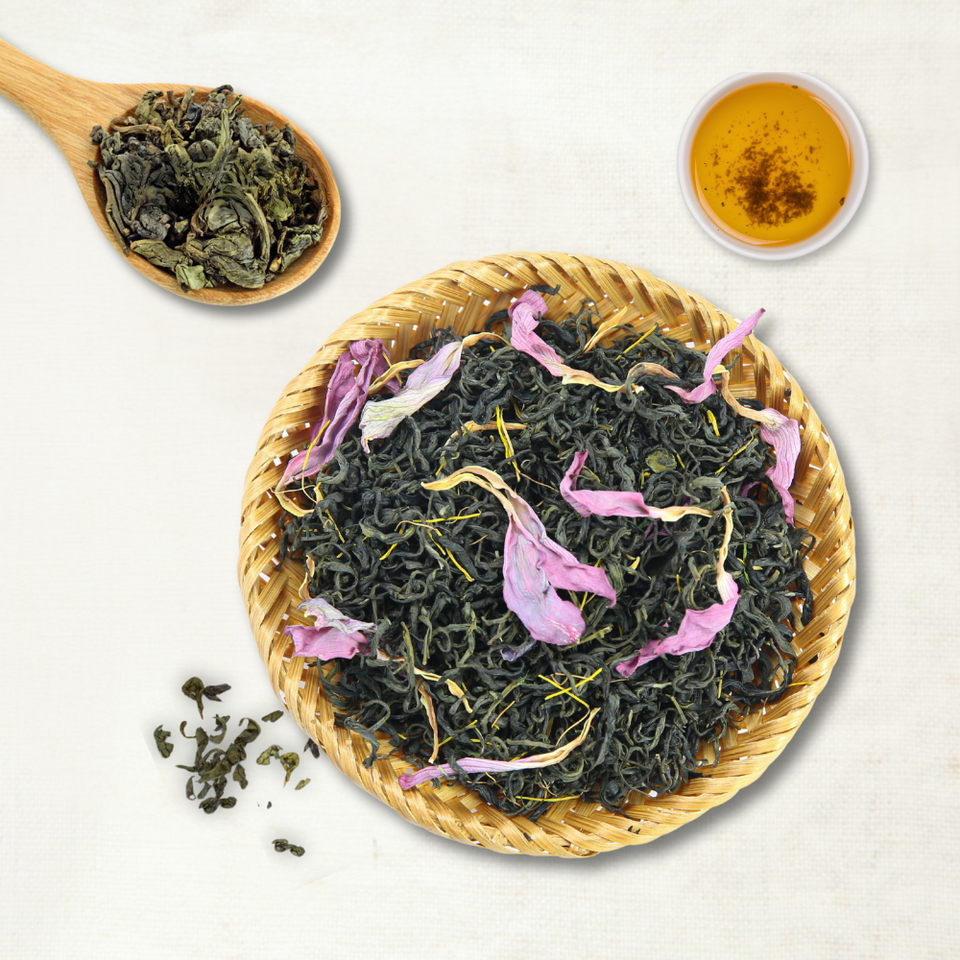 ชาเขียวหอมด้วยดอกไม้ชื่อพิเศษ