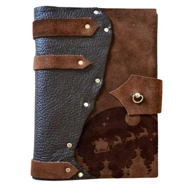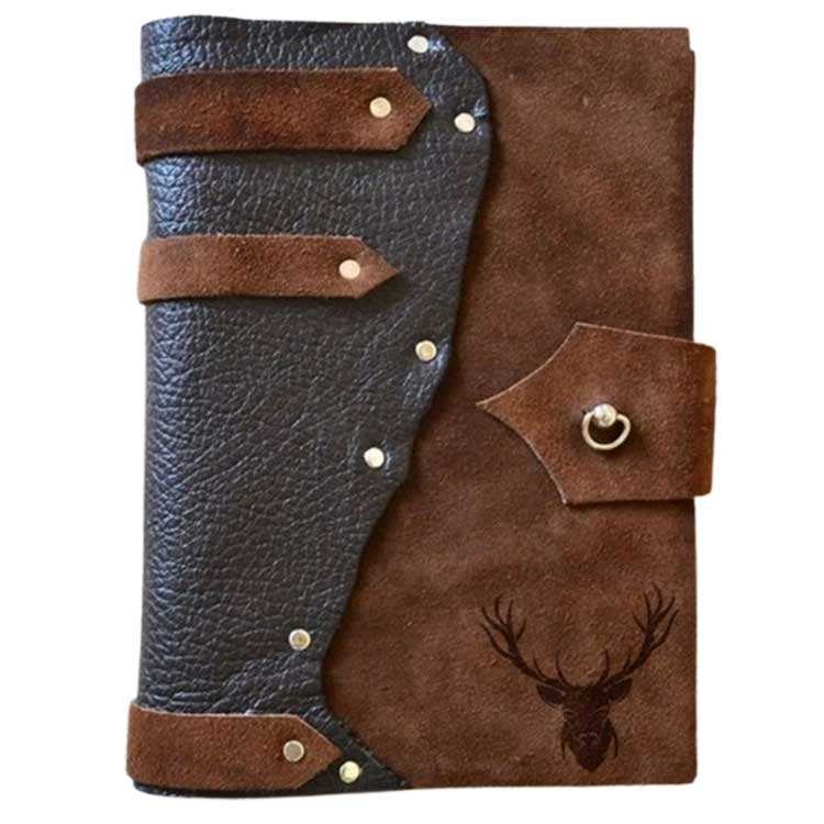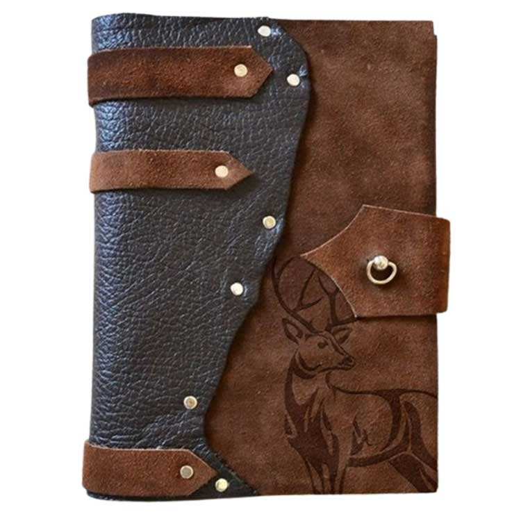สมุดโน้ตหนังแท้วินเทจสไตล์ลำลองเปิดปิดแบบไม่มีซับในสำหรับเขียนและร่าง