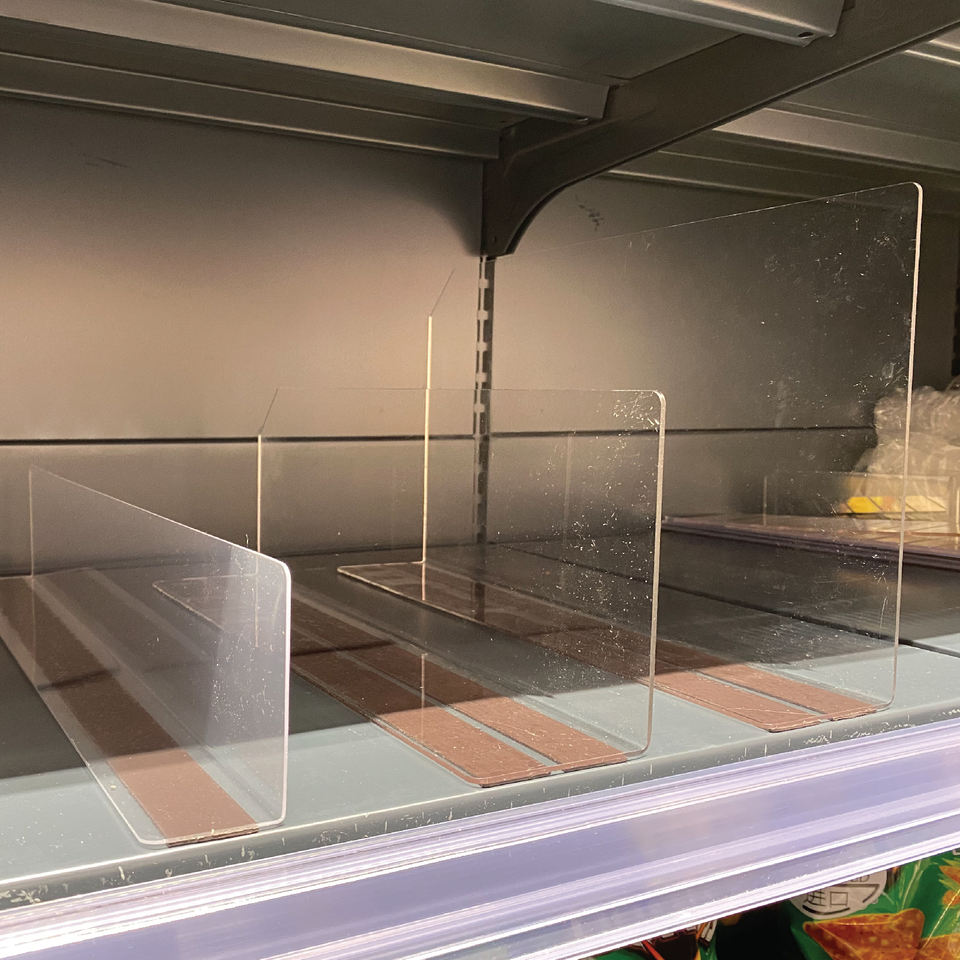 ตัวผลักแบ่งชั้นวางของพลาสติกพรีเมี่ยมอุปกรณ์ในซูเปอร์มาร์เก็ตมั่นคง