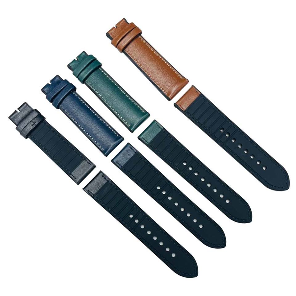สายนาฬิกาหนังแท้สีกากีกันน้ำสำหรับผู้ชายและผู้หญิงสายนาฬิกาซิลิโคน